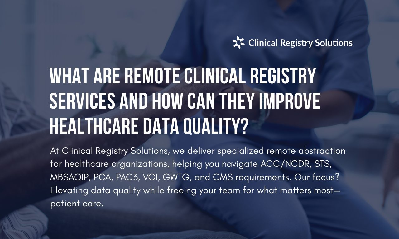 Explore how Remote Clinical Registry Services are reshaping healthcare data accuracy and performance reporting. Learn how expert remote registry abstraction specialists help hospitals maintain compliance, enhance data quality, and support better patient outcomes